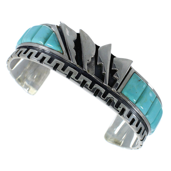 MATERIALS: Sterling silver and Real Turquoise. MEASUREMENTS: The inner bracelet circumference measures approximately 5-3/4", plus a 1-5/8" opening, 7/8" at widest point and weighs 52 grams.DESCRIPTION:The American Southwest is known for its amazing landscapes, historical culture, and unique jewelry designs....