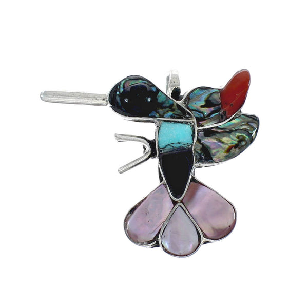 MATERIALS: Sterling Silver, real Turquoise, Coral, Jet, Abalone Shell, and Mother of Pearl. MEASUREMENTS: Pendant measures approximately 7/8" long (including bail) and 7/8" at widest point. DESCRIPTION:There is nothing at all average about this beautiful pendant! This piece of Native American...
