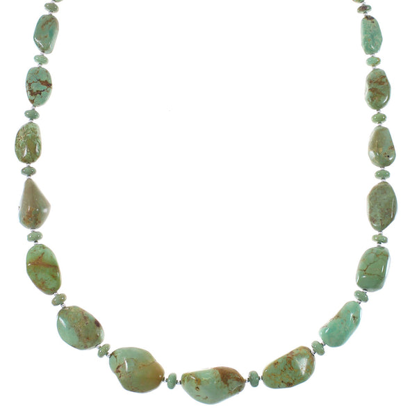 MATERIALS: Sterling Silver and real Kingman Turquoise.MEASUREMENTS: The necklace measures approximately 22" long. DESCRIPTION: This is a wonderful piece of Navajo artistry! This piece of Native American jewelry is Navajo hand strung out of genuine sterling silver and real Kingamn Turquoise beads. The...