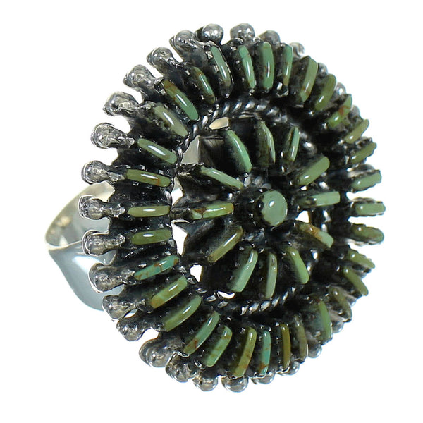 MATERIALS: Sterling silver and real Turquoise. MEASUREMENTS: Ring is size 7-1/2, it measures approximately 1" long and 1" wide. DESCRIPTION: The American Southwest is known for its amazing landscapes, historical culture, and unique jewelry designs. We are proud to be a...