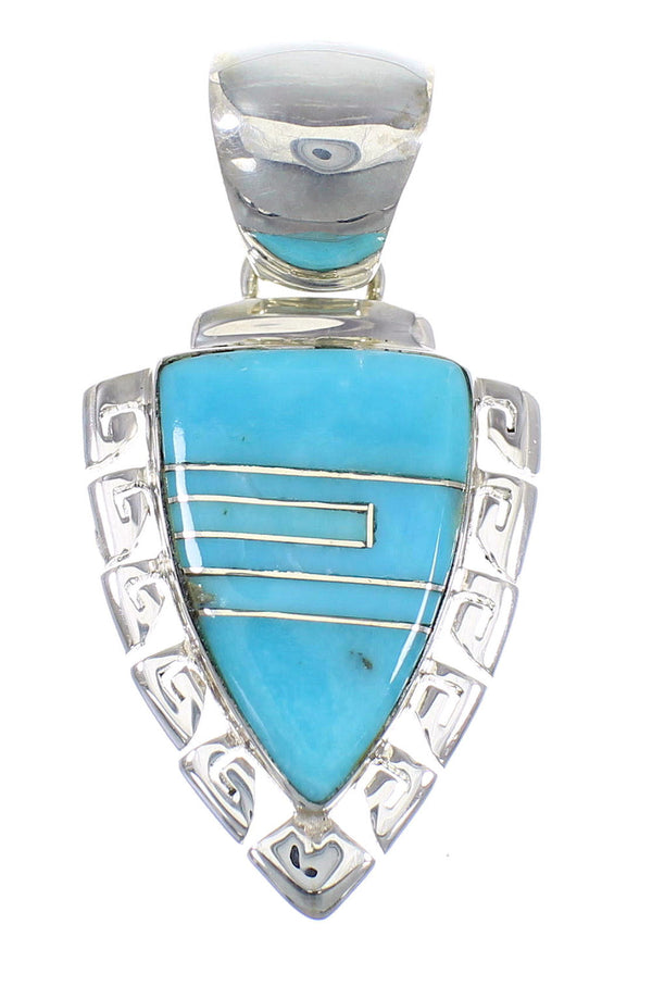 MATERIALS: Sterling Silver and real Turquoise.MEASUREMENTS: Pendant measure approximately 1-1/8" long (including bail) and 5/8" at widest point.DESCRIPTION: The American Southwest is known for its amazing landscapes, historical culture, and unique jewelry designs. We are proud to be a part...