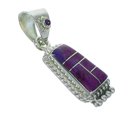 Authentic Sterling Silver And Magenta Turquoise Inlay Southwestern Pendant YX67049