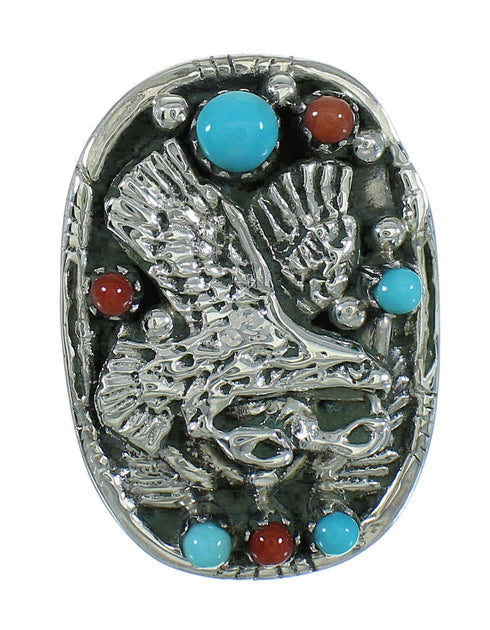 Authentic Sterling Silver Eagle Turquoise Coral Ring Size 4-1/2 RX84269