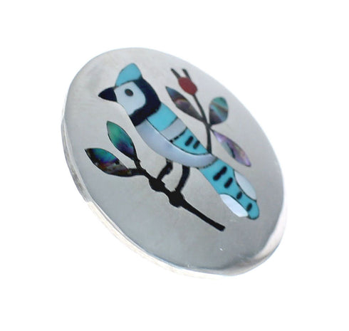 Excellent craftsmanship is shown throughout this amazing pendant! This piece of Native American jewelry is Zuni hand crafted by artist S.C. Edaakie, out of genuine Sterling silver and real Multicolor inlay. The inlay consists of: Turquoise, Coral, Jet, Abalone Shell, along with Mother Of Pearl. The inlay is carefully set while creating a magnificent Parrot design for a perfect finish. Pin pendant is hallmarked by the artist.