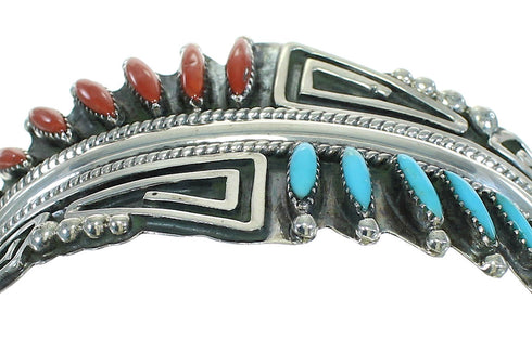 Coral And Turquoise Sterling Silver Cuff Bracelet RX65347