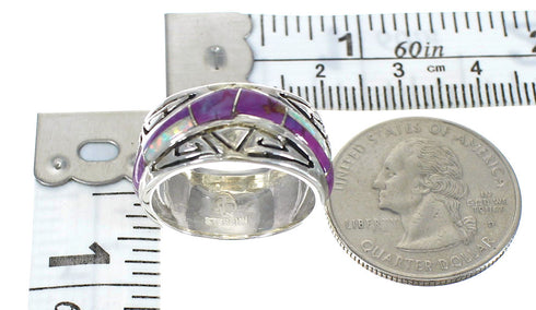 Magenta Turquoise Opal Inlay Authentic Sterling Silver Water Wave Ring Size 5 RX61310