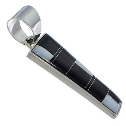 Check out this incredible inlay pendant! The pendant is hand made out of genuine sterling silver, real Mother of Pearl and Black Jade inlay. The inlay is carefully set, while thin silver lines can be seen accenting for a great look. The pendant is stamped sterling and hallmarked.
