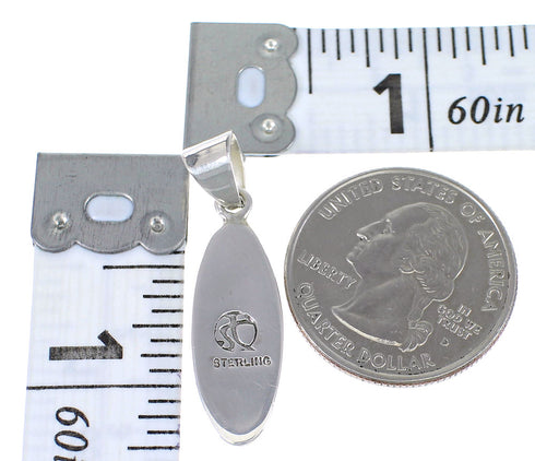 Pendant measures approximately 1-3/8" long (including bail) and 3/8" at widest point.