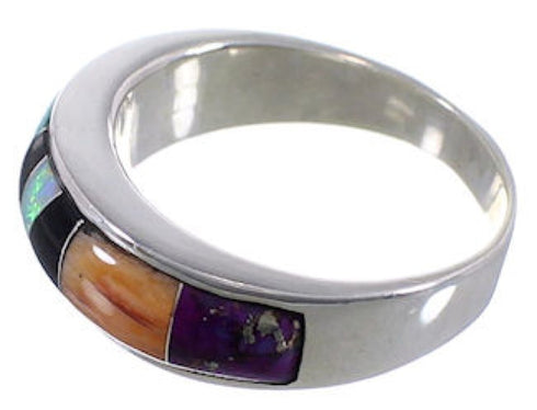 Multicolor Inlay Genuine Sterling Silver Ring Size 6-1/2 TX38234