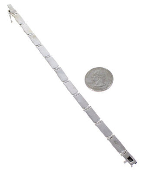 The link bracelet measures approximately 7-1/4" inside circumference, which means the bracelet will fit a wrist that is 6-1/4" to 7" comfortably. Each link measures approximately 1/2" long (excluding side rings) and 1/4" at widest point.