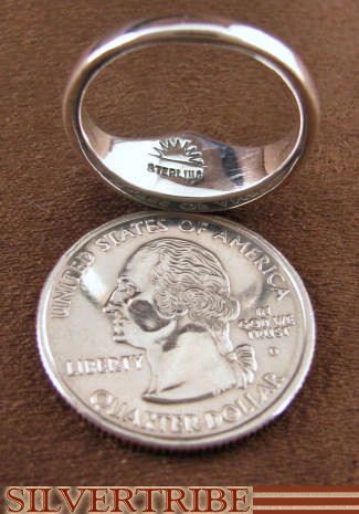 This is a lovely ring! This piece of jewelry is hand made out of genuine sterling silver and multicolor inlay. The inlay consists of: real Turquoise, Red Oyster Shell, Magenta Turquoise, and man made Opal. The inlay is carerfully set, while creating a wonderful cobble stone design. The ring is stamped sterling and hallmarked.