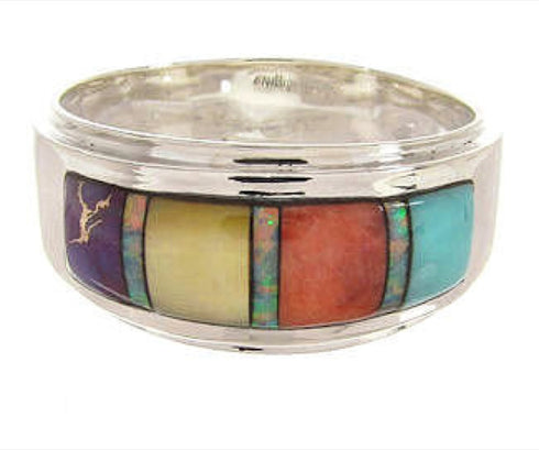 Multicolor Inlay Sterling Silver Southwestern Ring Size 5-1/2 PS58306
