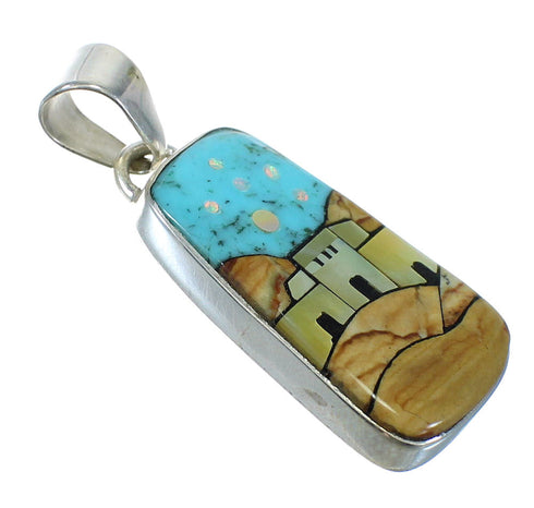 Multicolor Native American Pueblo Design Silver Southwest Pendant MX64325