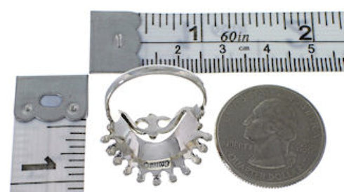 If you are looking for elegance and beauty, you have found it! The ring is hand crafted out of genuine sterling silver and multicolor stones. The stones include: real Turquoise, Magenta Turquoise, Mojave Turquoise, and Red and Orange Oyster Shell. A total of ELEVEN needlepoint stones are delicately set in silver bezel, while being accented with twisted silver, mini silver beads, and cut through designs that add style. The ring is stamped sterling.