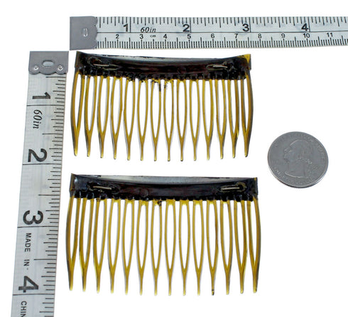 Hair combs measures approximately 1-3/4" long (including comb) and 2-3/4" at widest point.
