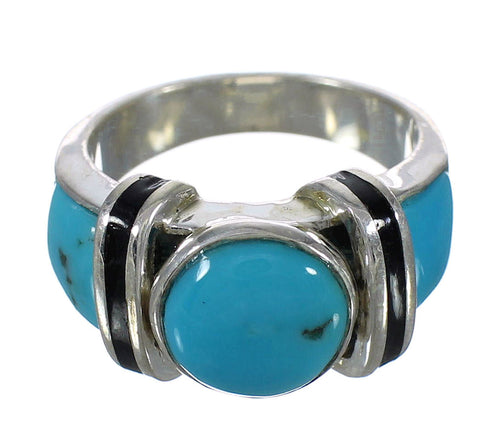 Silver Turquoise And Jet Ring Size 6-1/4 AX82511