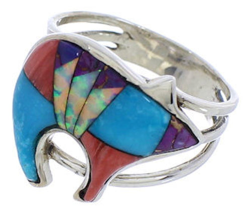 Southwest Multicolor Bear Sterling Silver Ring Size 6-3/4 CX52517