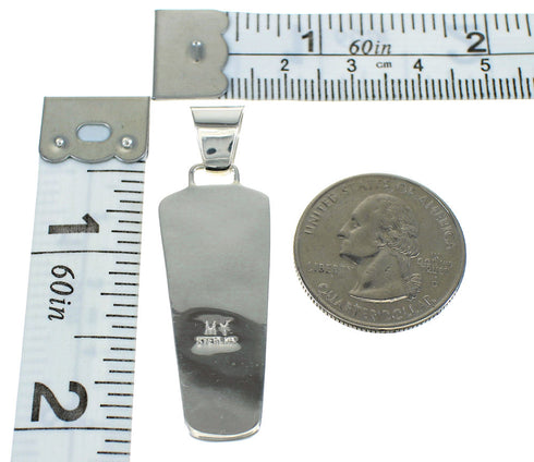 Pendant measures approximately 1-7/8" long (including bail) and 5/8" at widest point.
