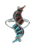 Southwest Turquoise And Coral Needlepoint Sterling Silver Ring Size 4-3/4 WX74809