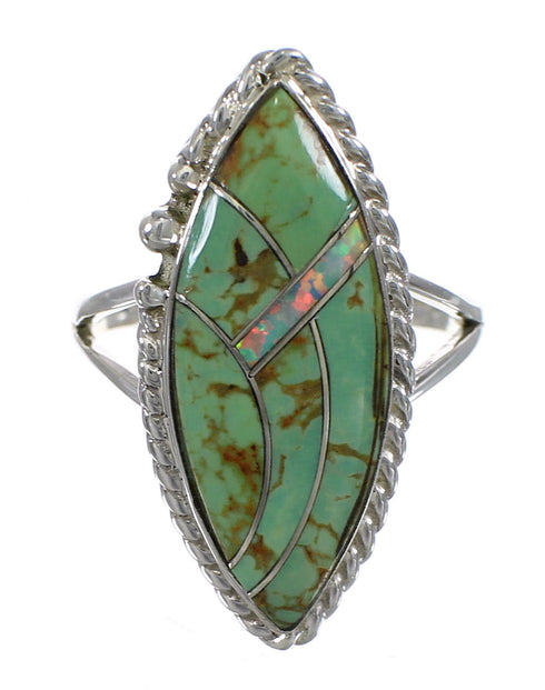 Southwest Turquoise Opal Genuine Sterling Silver Ring Size 6-3/4 YX88832