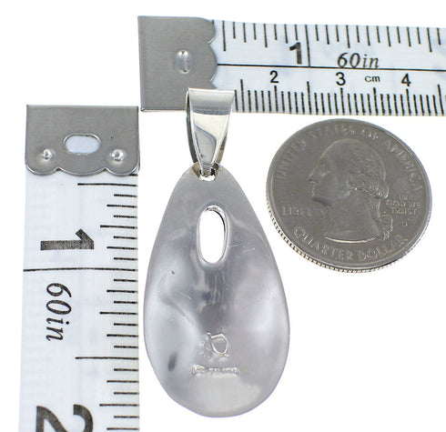 Pendant measures approximately 1-7/8" long (including bail) and 3/4" at widest point.
