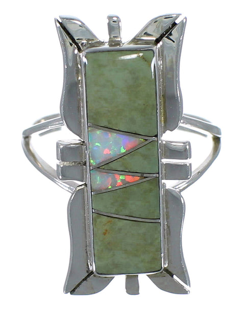 Southwestern Turquoise And Opal Silver Ring Size 6-1/2 AX53651
