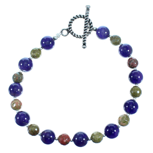 Sterling Silver Amethyst And Unakite Bead Bracelet SX114891