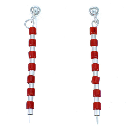 Expect plenty of compliments while wearing this stunning pair of earrings! This piece of Native American jewelry is Navajo hand strung out of genuine sterling silver, along with real Coral heishi beads. The earrings consist of: 2-mm barrel silver beads and 2-mm Coral heishi beads.