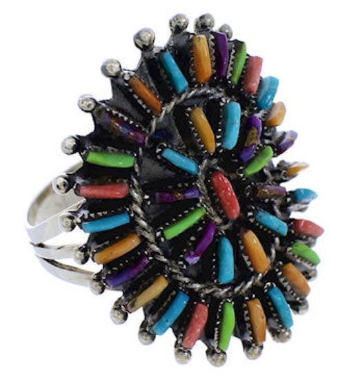 Sterling Silver Multicolor Needlepoint Southwestern Ring Size 5-1/2 VX56757