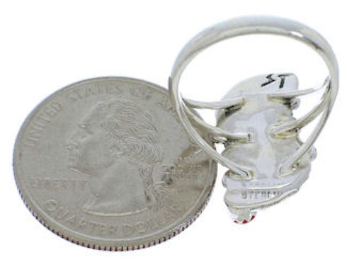 Turquoise And Coral Flower Sterling Silver Ring Size 6-3/4 EX45317