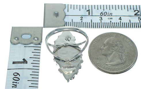 Turquoise And Coral Southwest Silver Needlepoint Ring Size 4-3/4 AX81833