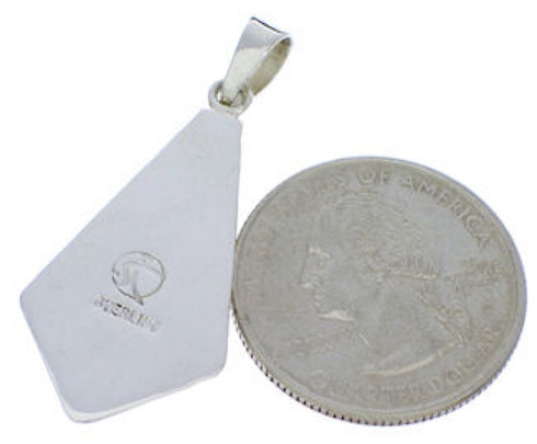 This is a very exquisite pendant that would make a great gift! This is a gorgeous piece of jewelry that is crafted out of genuine sterling silver and real Turquoise inlay. The inlay is delicately set, while thin silver lines can be seen accenting in between for a delightful finish. The pendant is stamped sterling and hallmarked.