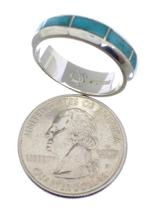 Turquoise Inlay And Sterling Silver Southwest Ring Size 4-3/4 TX40108