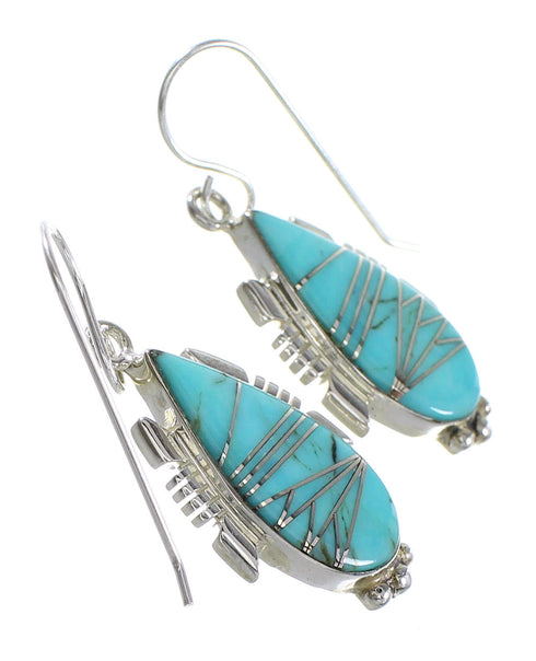 Turquoise Inlay Sterling Silver Southwestern Jewelry Hook Dangle Earrings AX94657